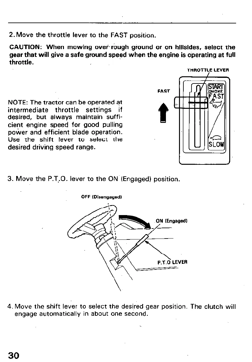 3. Move the P.T,.O. lever to the ON (Engaged) position.