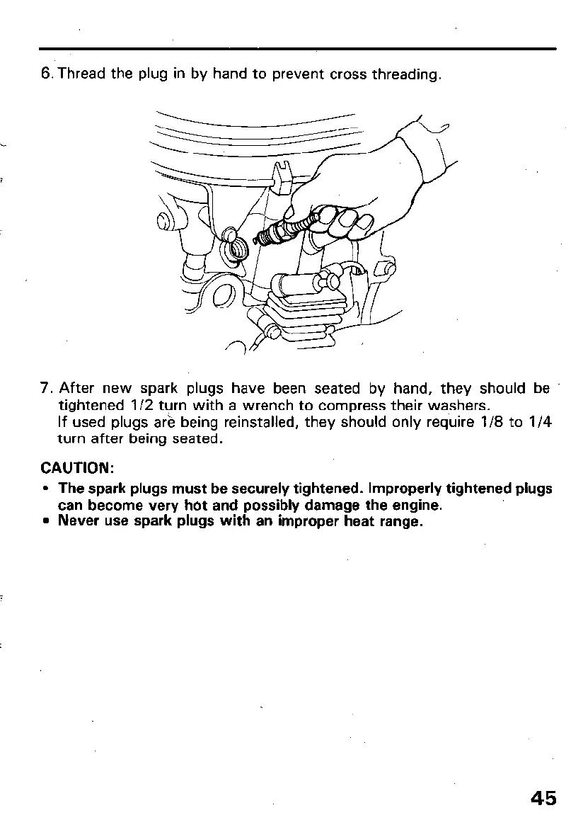 l The spark plugs must be securely tightened. Improperly tightened plugs