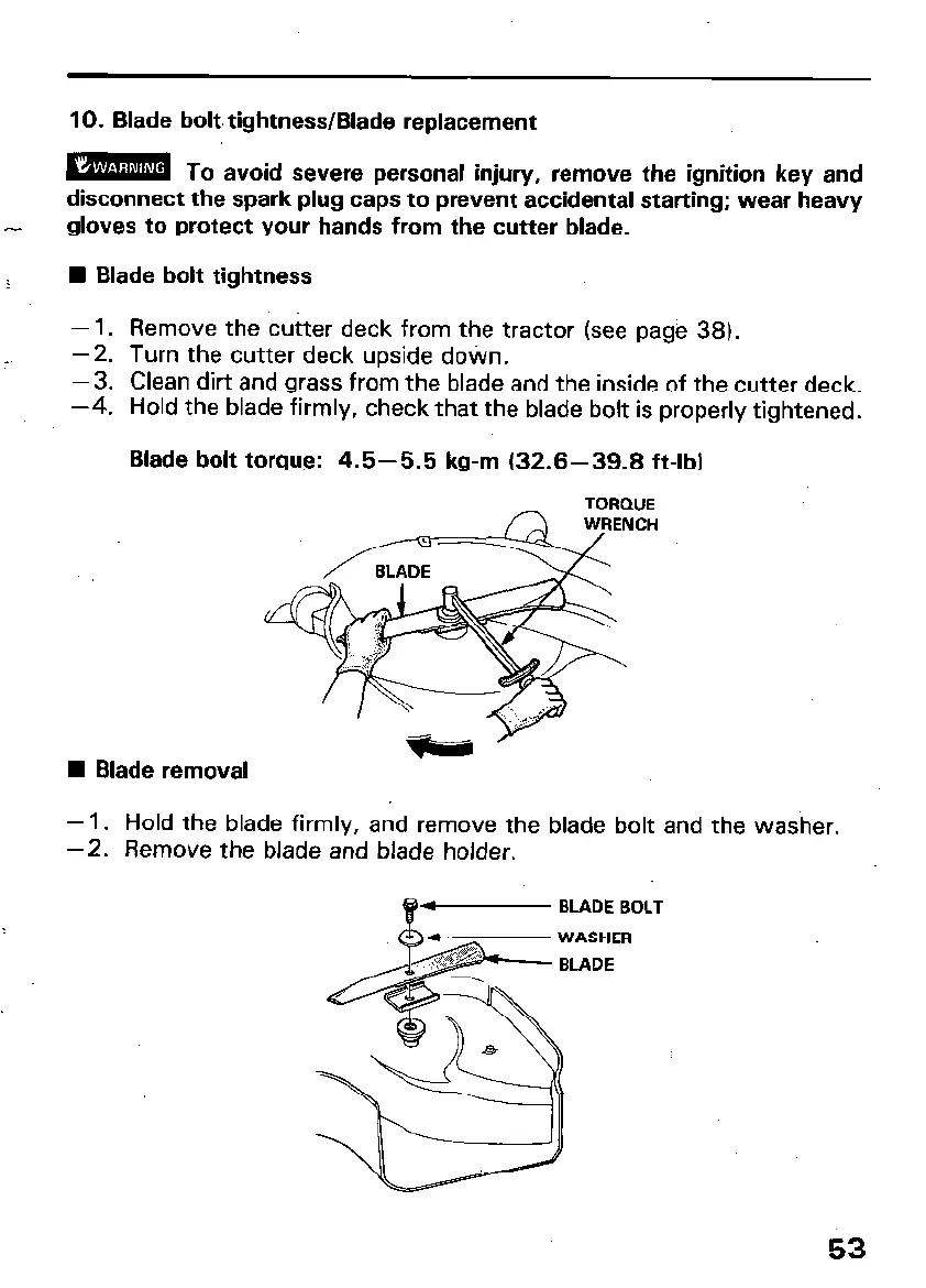 Blade bolt torque: 4.5-5.5 kg-m (32.6-39.8 ft-lb)