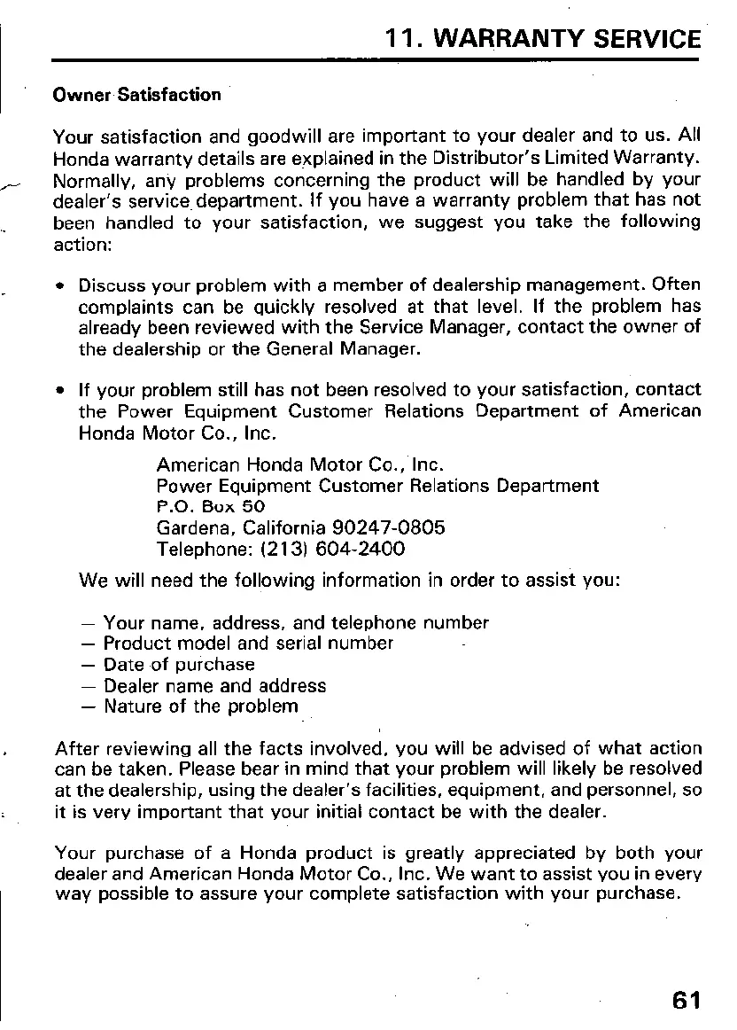 dealer and American Honda Motor Co., Inc. We want to assist you in every