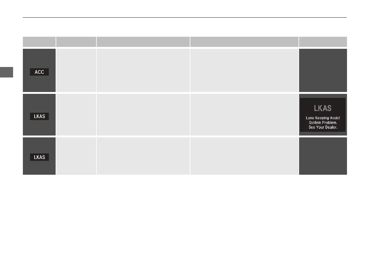 Indicator Name On/Blinking Explanation Message