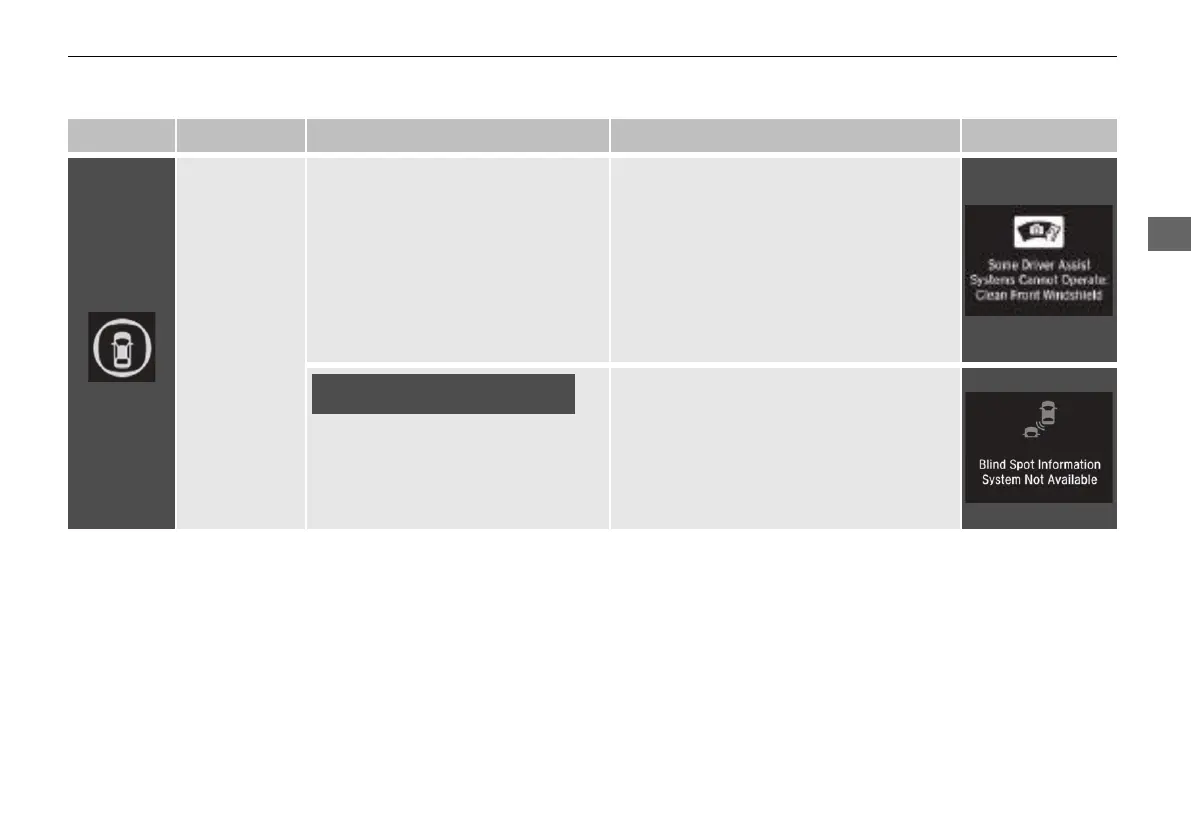 Indicator Name On/Blinking Explanation Message