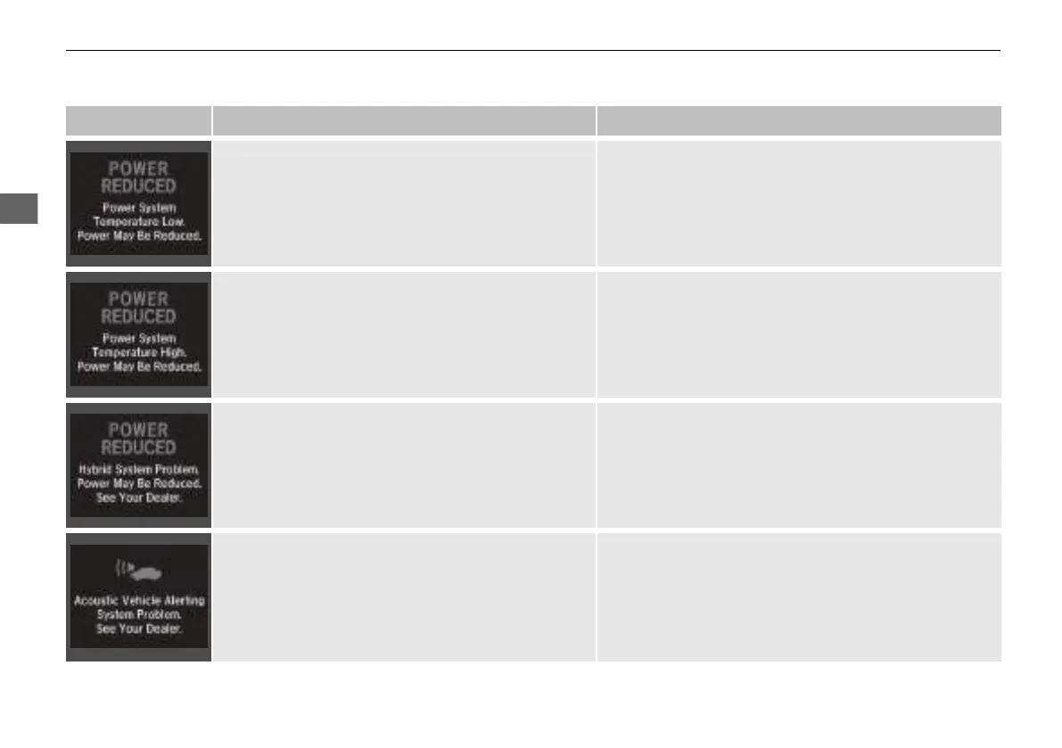 • Appears when the power system temperature is low. • Your vehicle has less ability to accelerate and may be