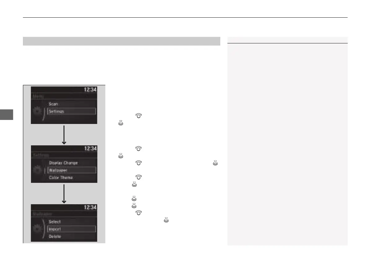 You can change, store, and delete the wallpaper on the audio/information screen.
