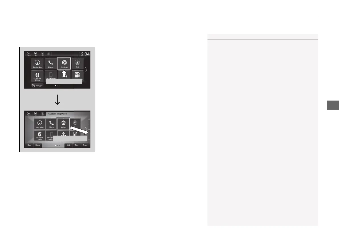 u The screen switches to the customization