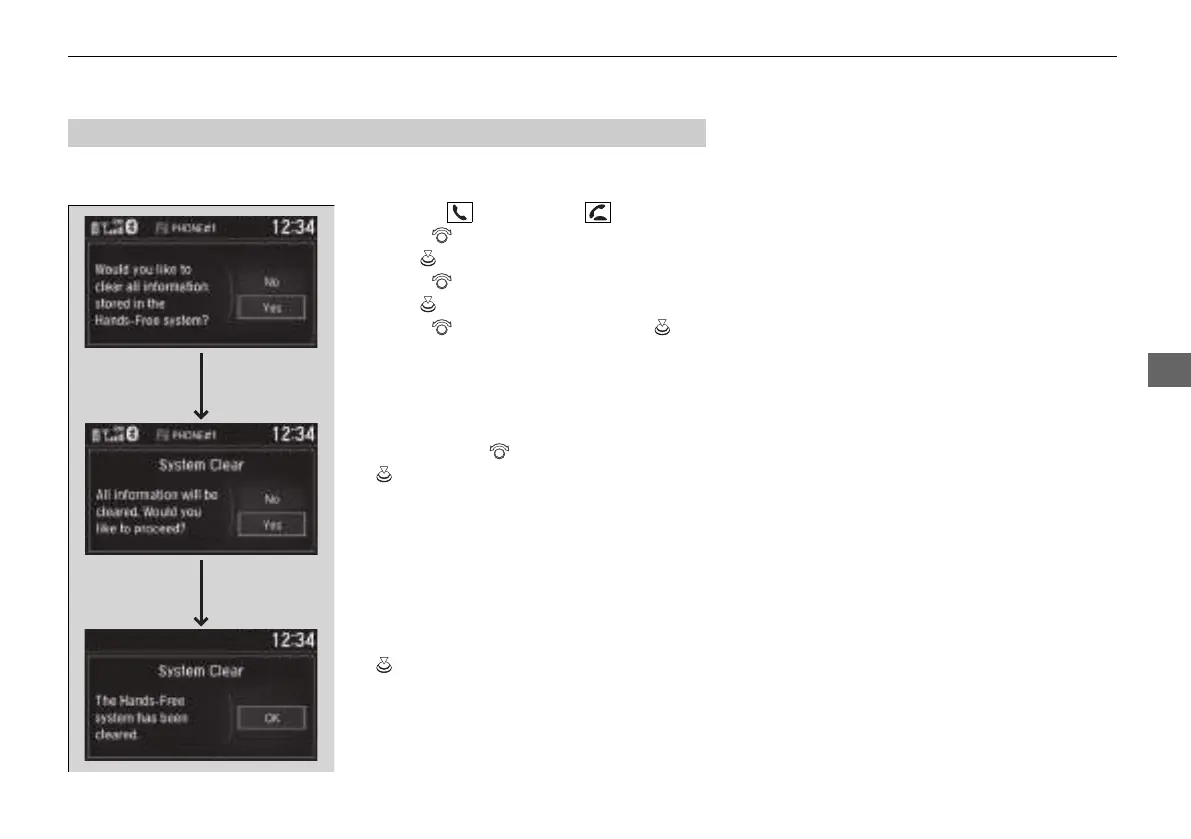 Pairing codes, paired phones, all stored voice tags, all speed dial entries, all call