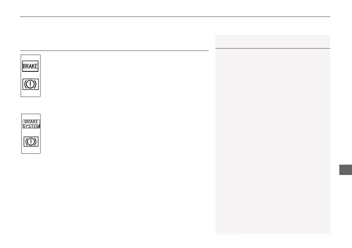 • If the brake system indicator (red) continuously comes on or blinks at