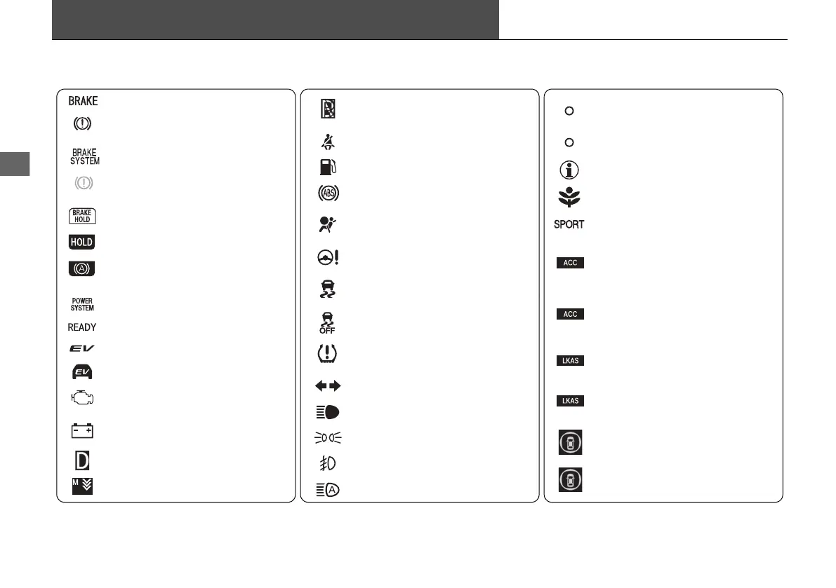 system has started. If an indicator does not come on or turn off, there may be a malfunction in the corresponding system. To resolve the issue, follow the instructions in