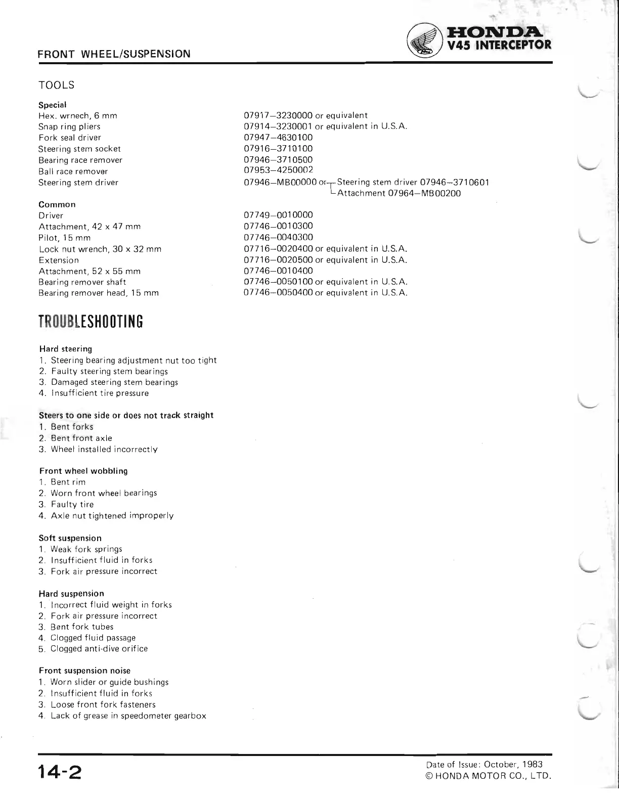 07746-0050100 or equivalent in U.S.A.
