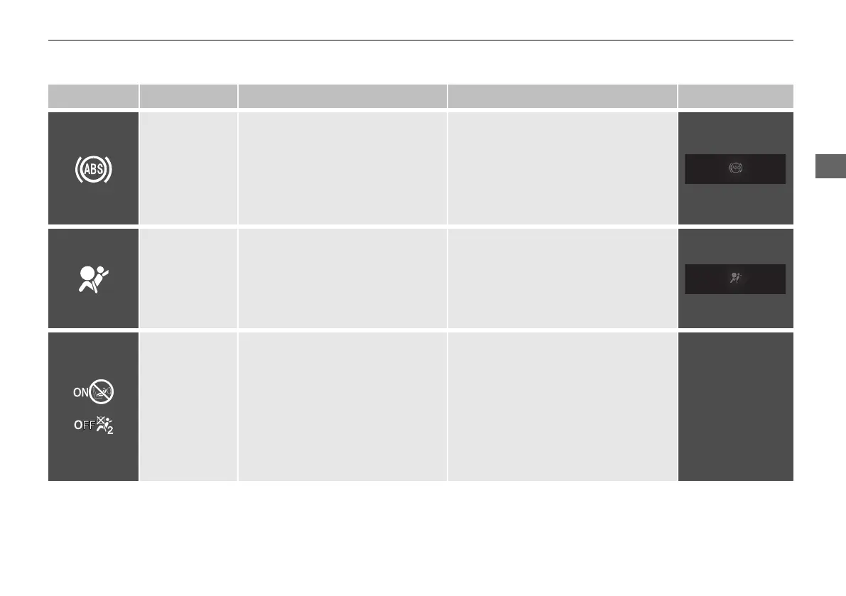 Indicator Name On/Blinking Explanation Message