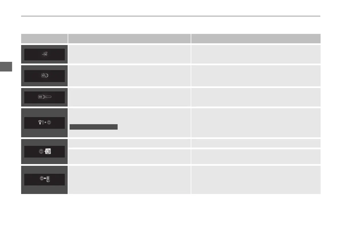 • Appears if the keyless remote’s battery is too weak