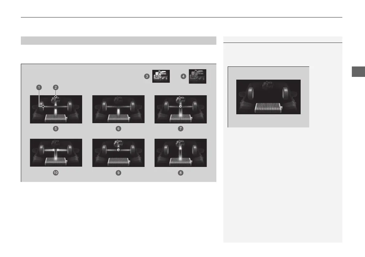 Displays the power flow of the motor and engine, indicating the vehicle’s power