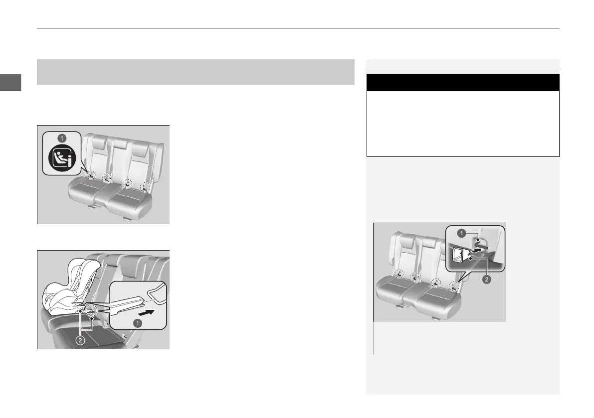 two outer rear seats. A child restraint system is attached to the lower anchorages