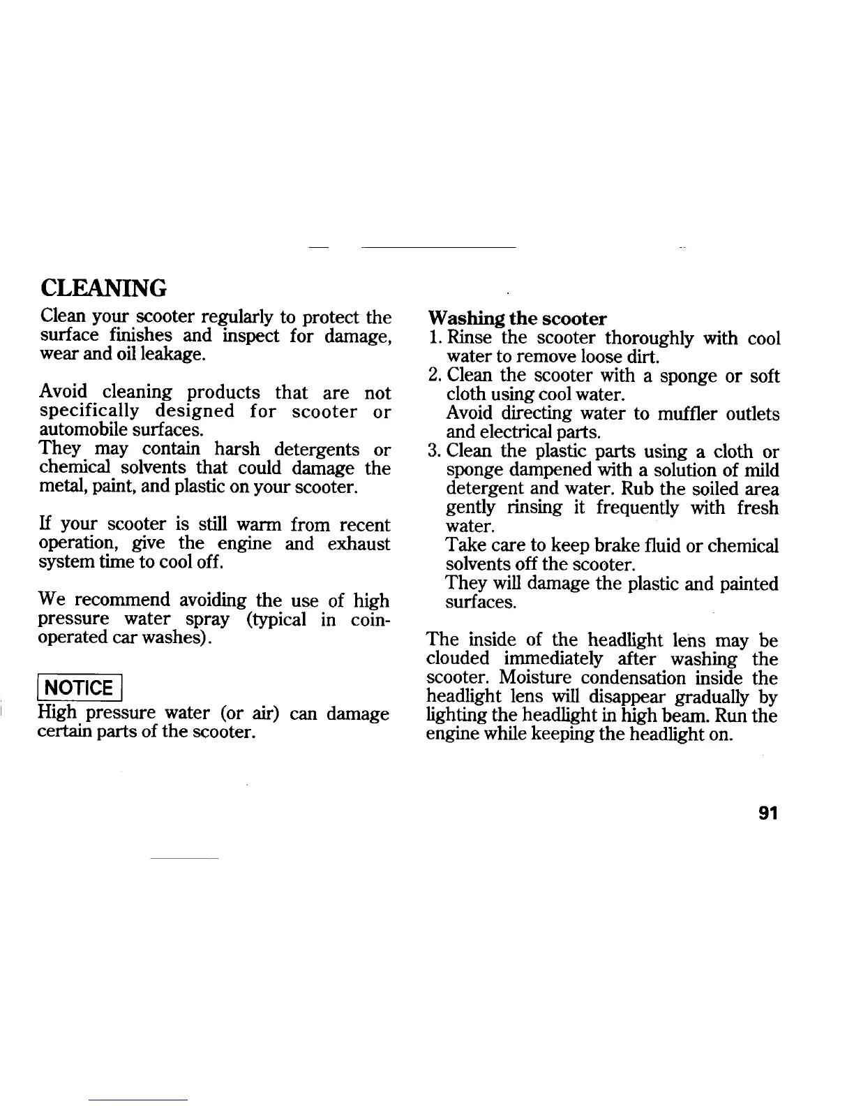 Honda LEAD SCV100 - Cleaning and Washing; Washing the Scooter