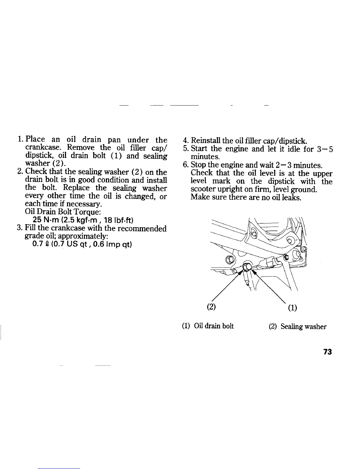 Honda LEAD SCV100 - Engine Oil Drain Bolt Procedure