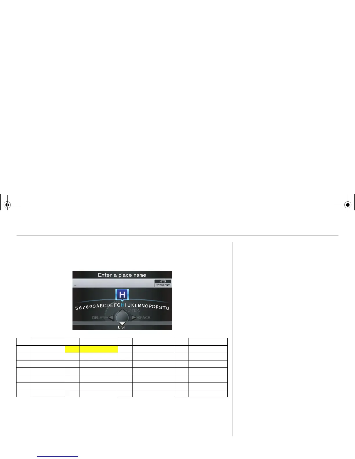 The voice command names that can be used for each letter are shown below. For