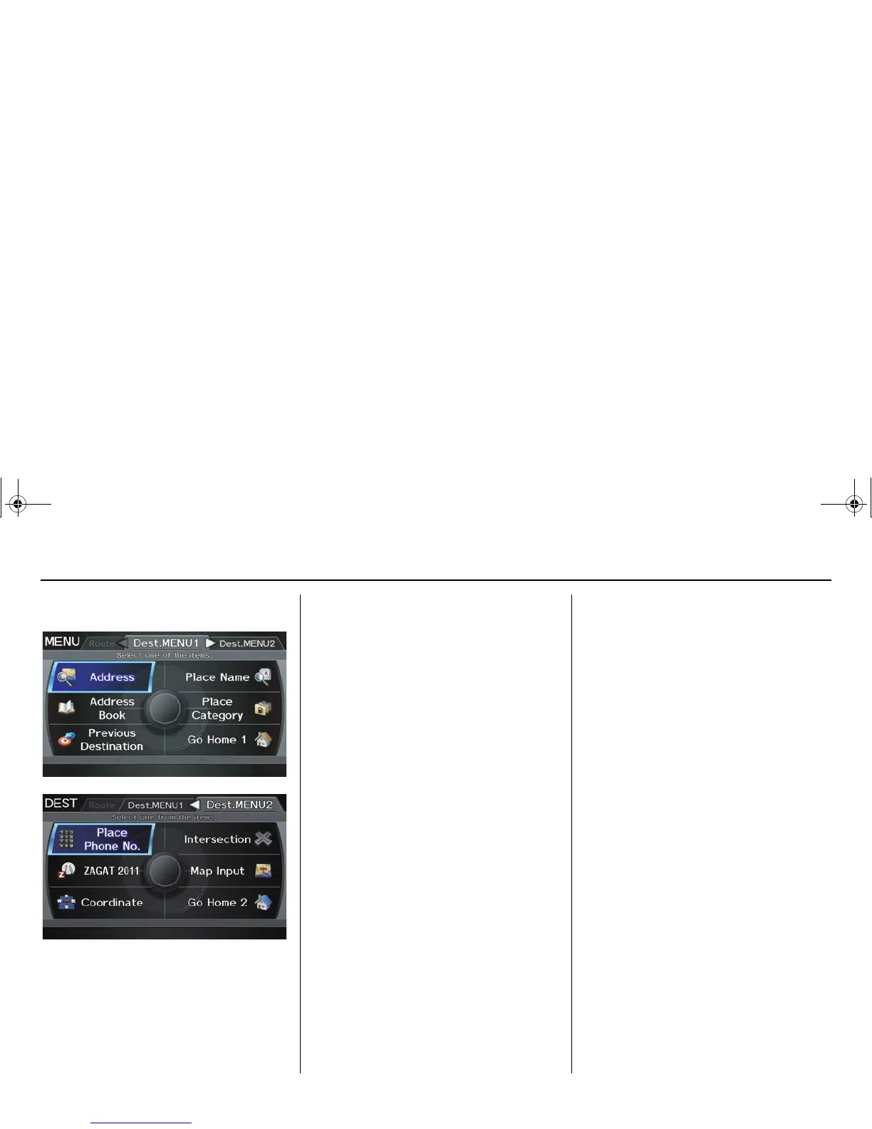 select the “Dest. MENU 1” tab by