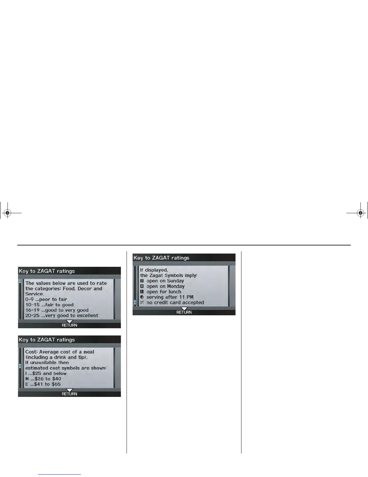 Key to ZAGAT ratings