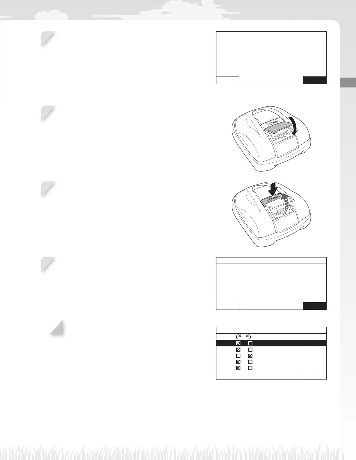 If you select [Yes], Mowing start points screen is displayed