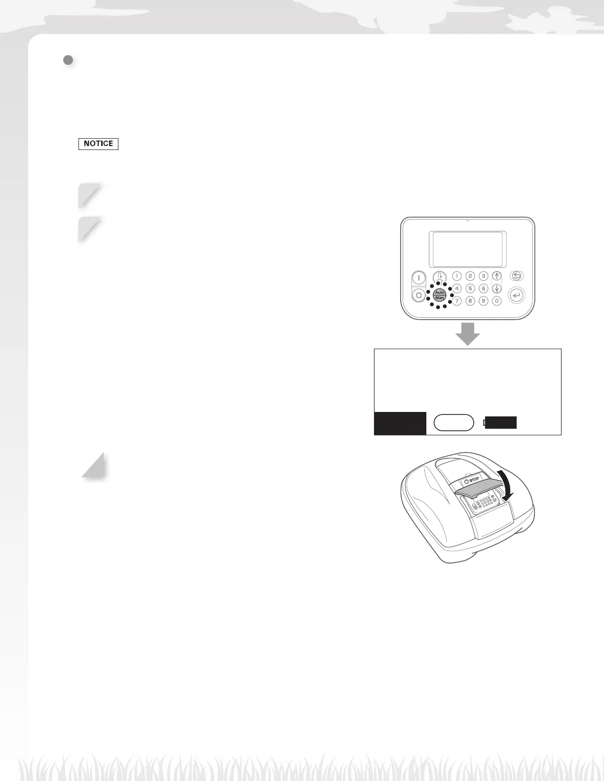 - If you press the B (Off) button after confi guring these settings, the lawn mower will not activate.