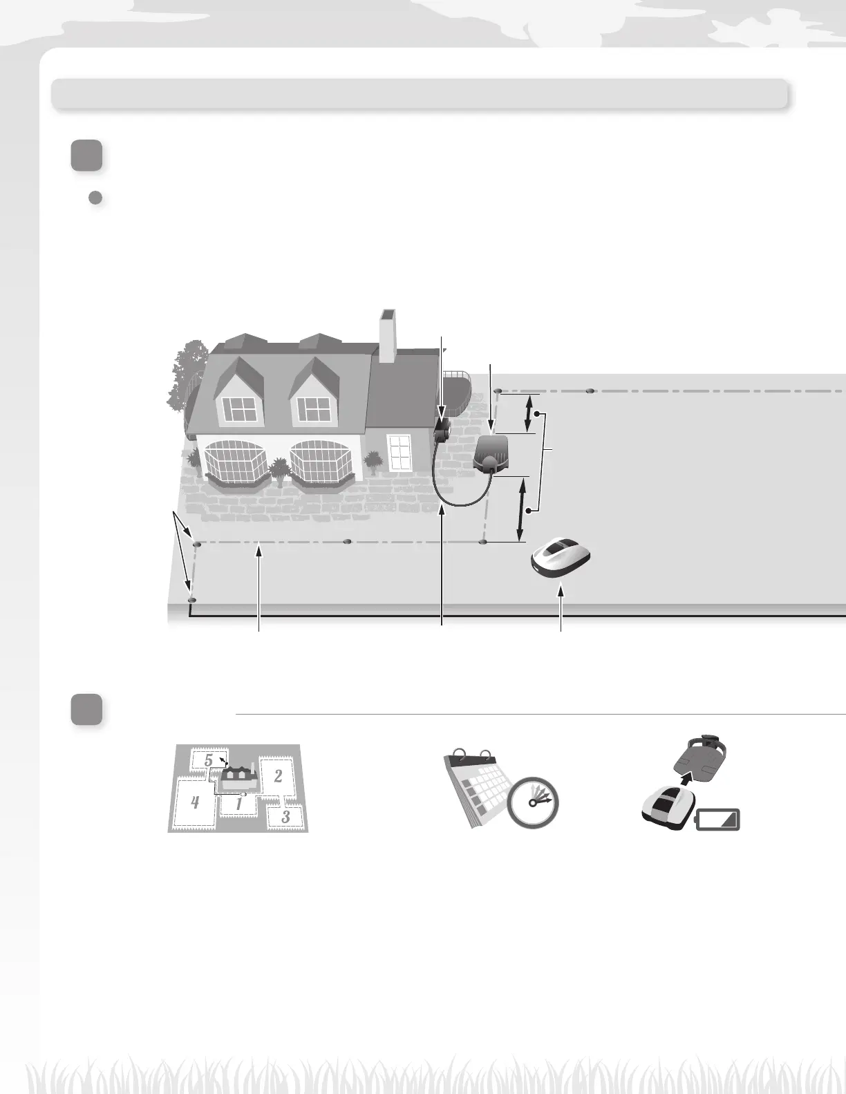 The mowing area is determined by the boundary wire that emits a signal; when the lawn