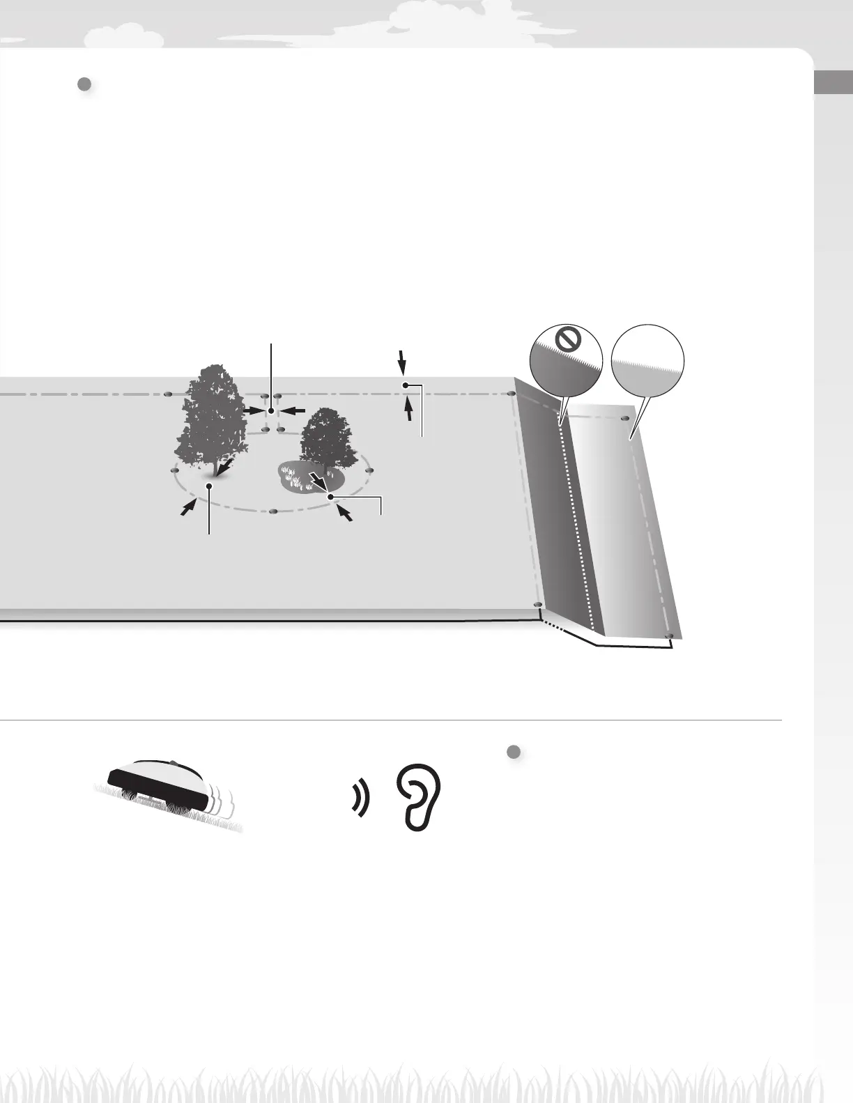 * Laying the boundary wire where the slope is too steep has a bad effect on the lawn mower. This is because the lawn mower follows