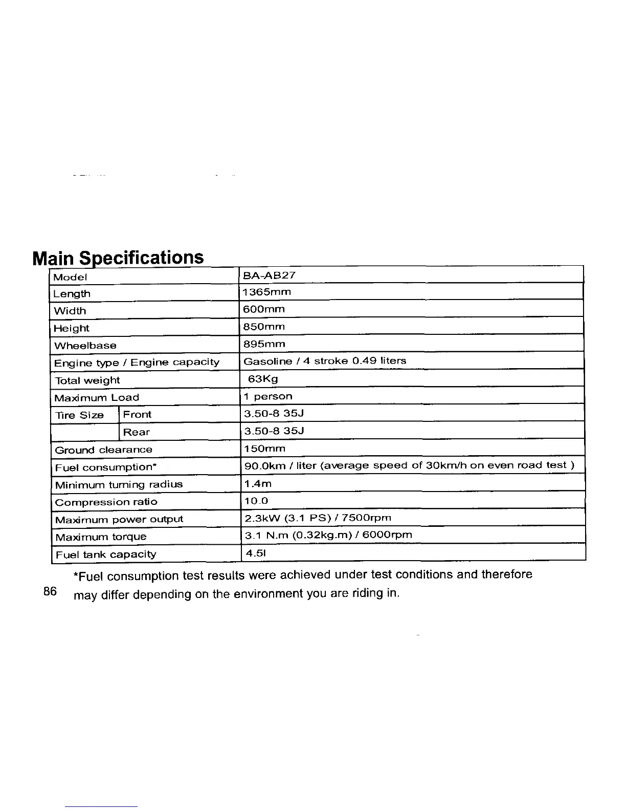 Honda MONKEY - Main Specifications Overview