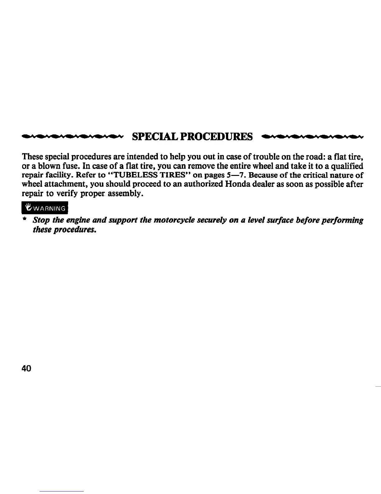 Honda MVX250F - Technical Specifications and Special Procedures; Special Procedures