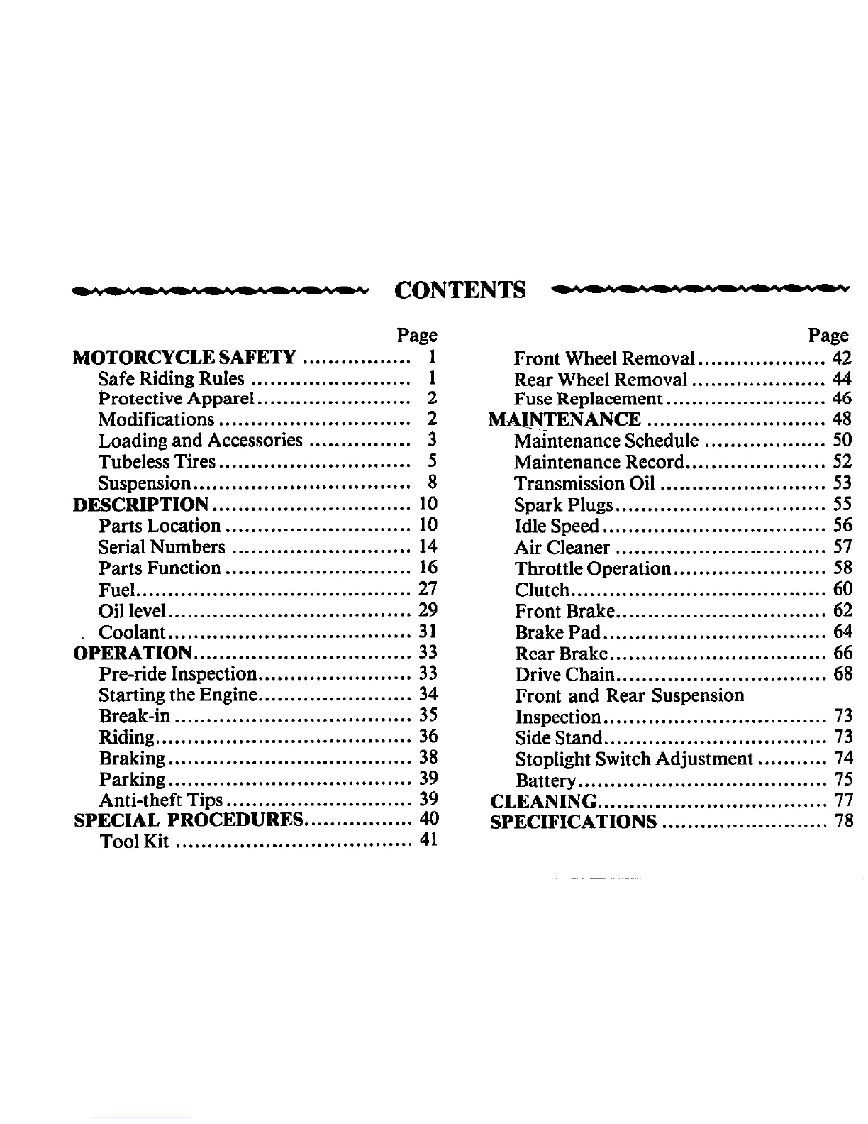 Honda MVX250F - Contents