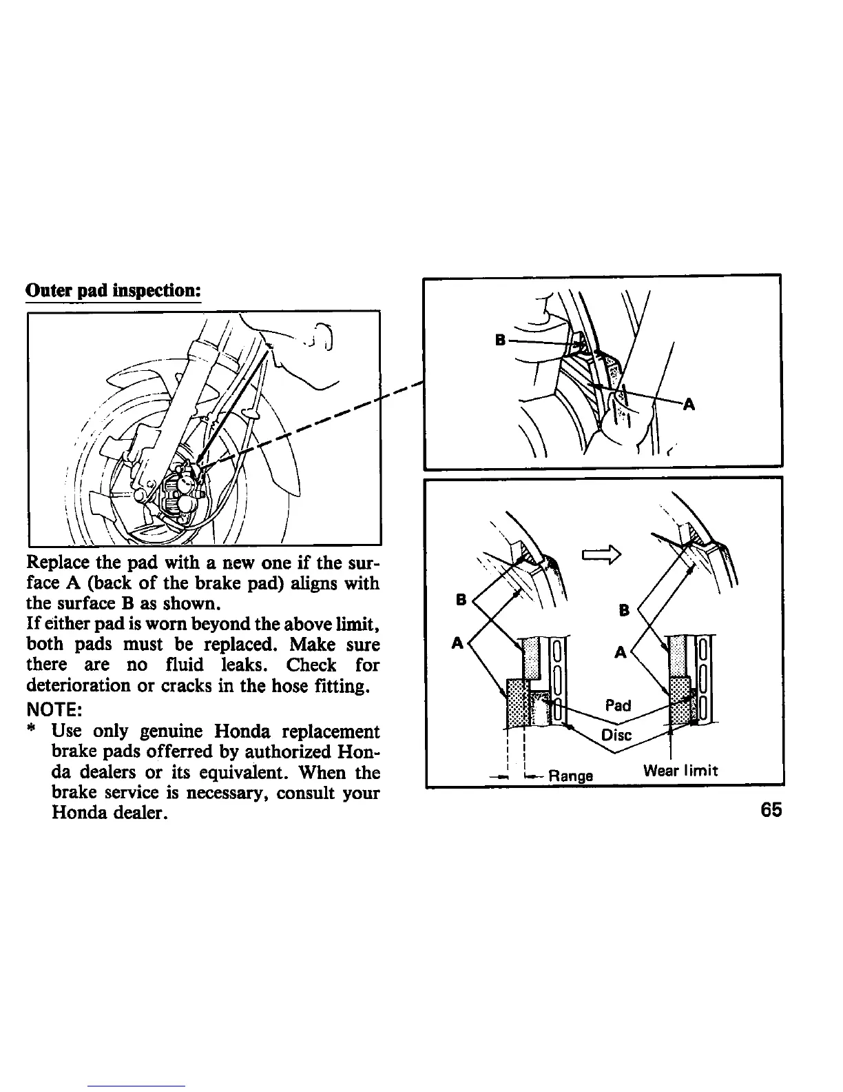 Honda MVX250F - Outer Pad Inspection