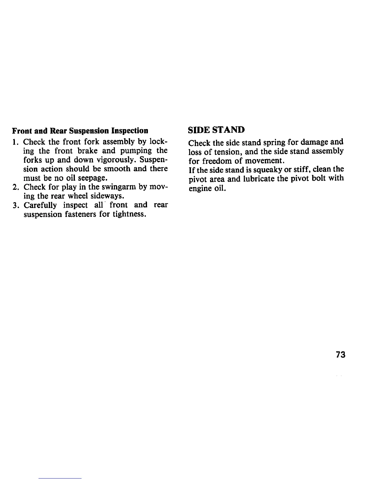 Honda MVX250F - Side Stand; Front and Rear Suspension Inspection