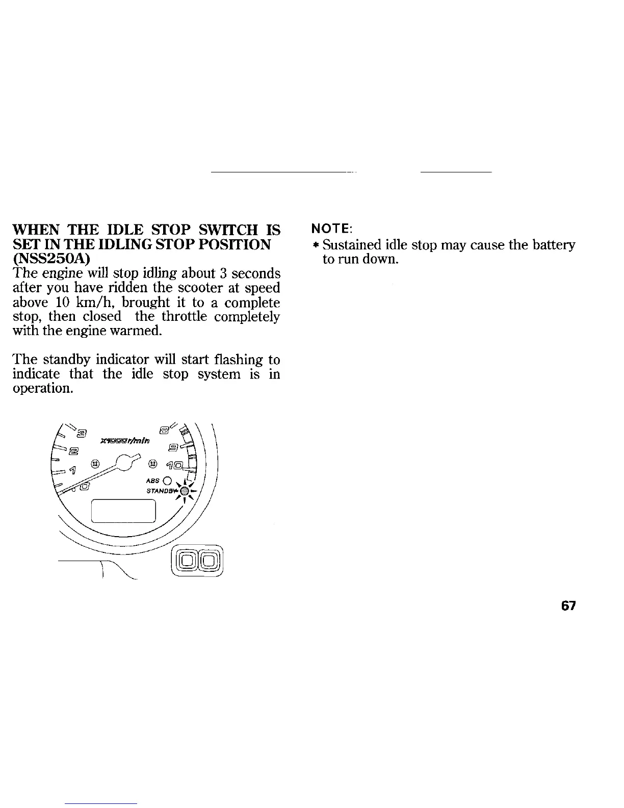 Honda NSS250 - When the Idle Stop Switch Is Set in the Idling Stop Position