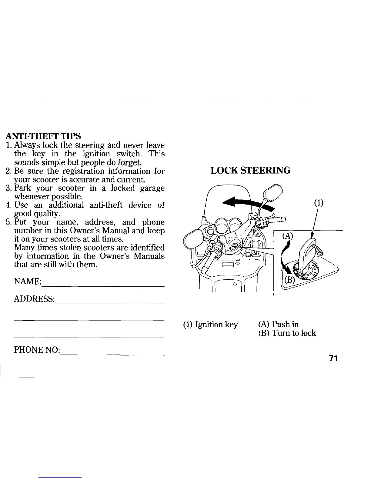 Honda NSS250 - Anti-Theft Tips; Lock Steering