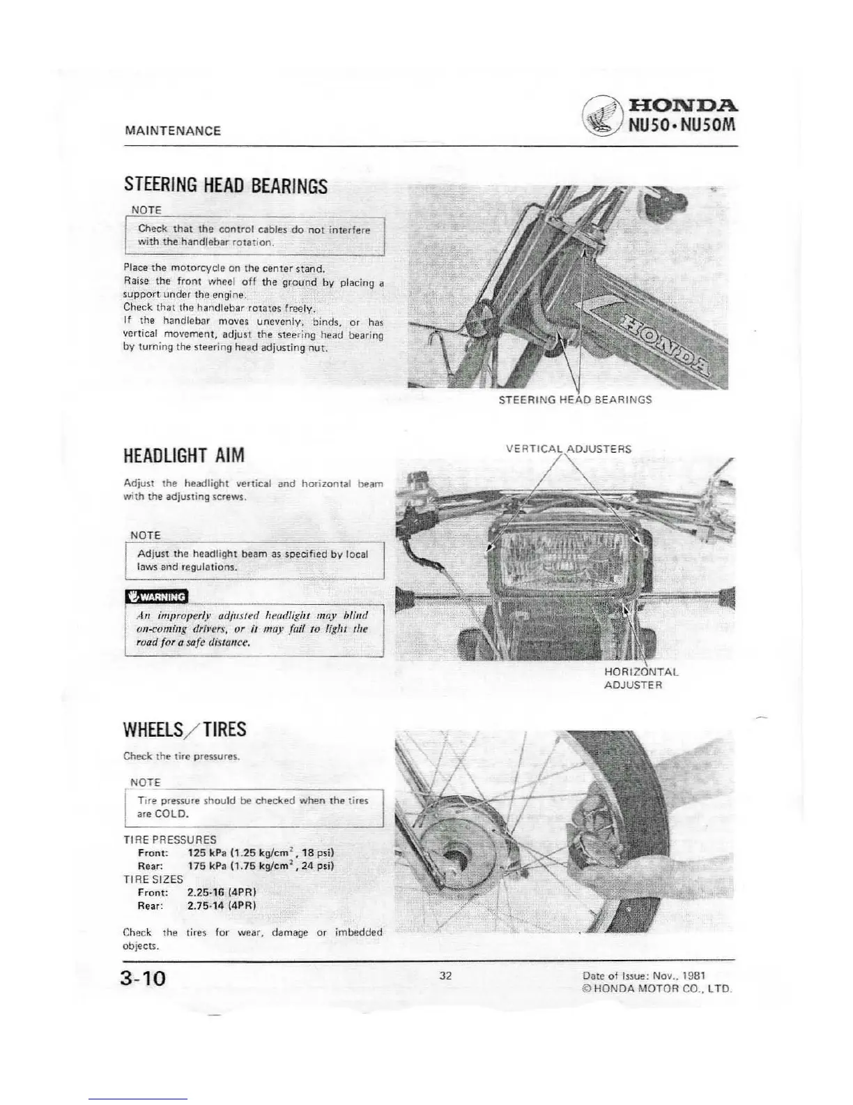 Honda NU50 - Steering Head Bearings; Headlight Aim; Wheels;Tires