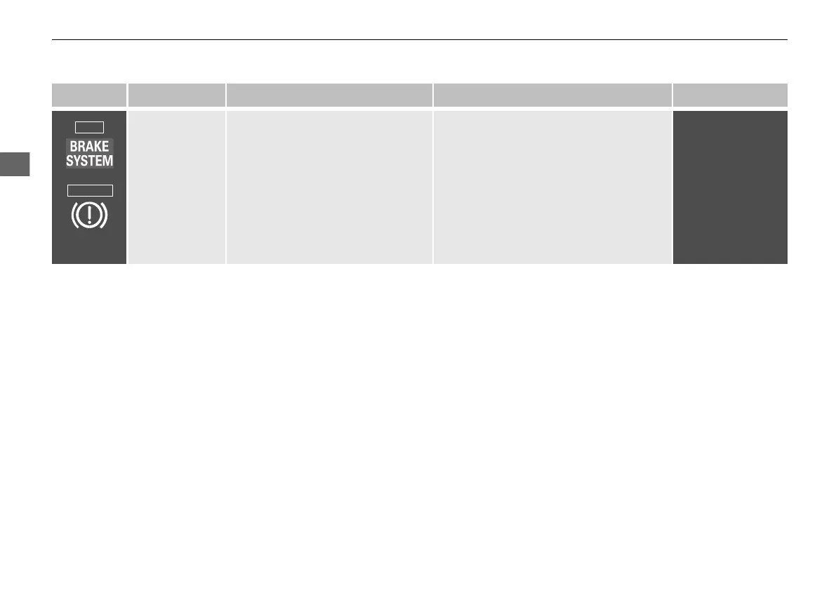 Indicator Name On/Blinking Explanation Message