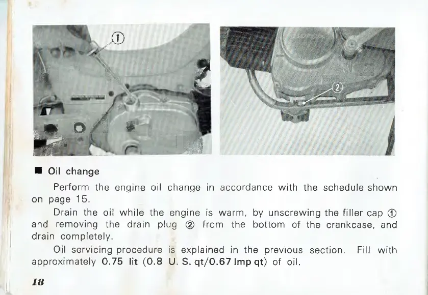 approximately 0.75 lit (0.8 U. S. qt/0.67 Imp qt) of oil.