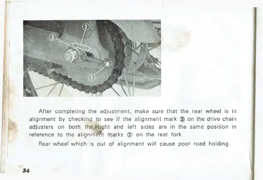 alignment by checking to see if the alignment mark (3) on the drive chain