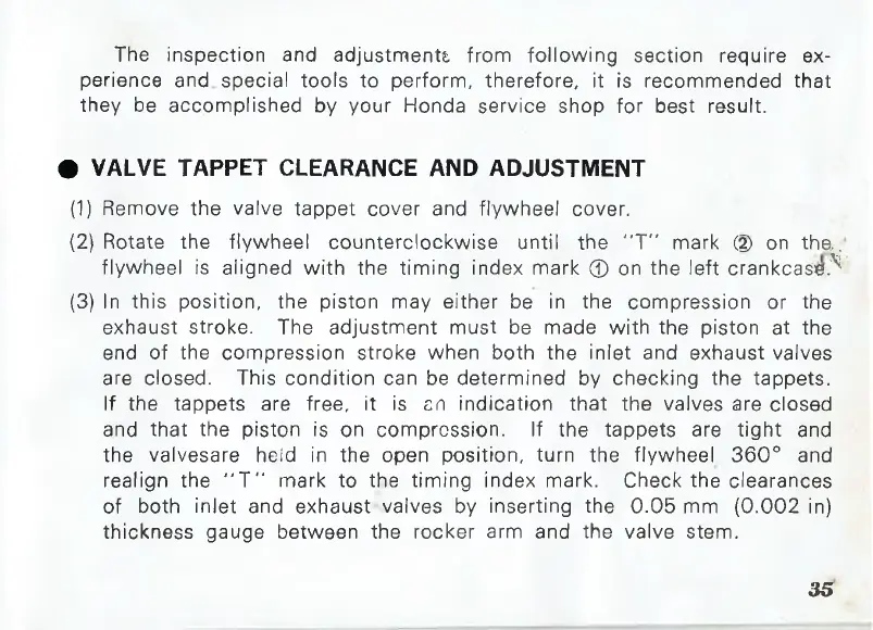 of both inlet and exhaust valves by inserting the 0.05 mm (0.002 in)