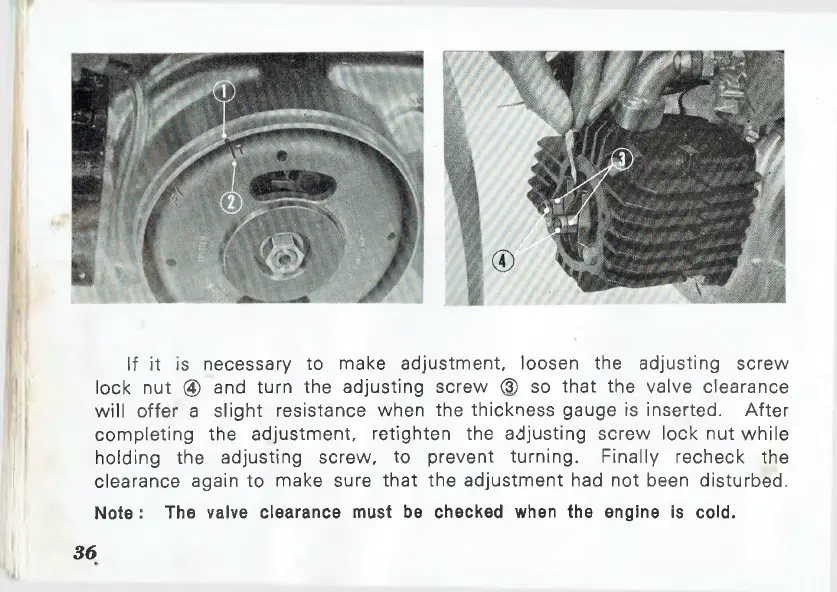 lock nut © and turn the adjusting screw (3) so that the valve clearance