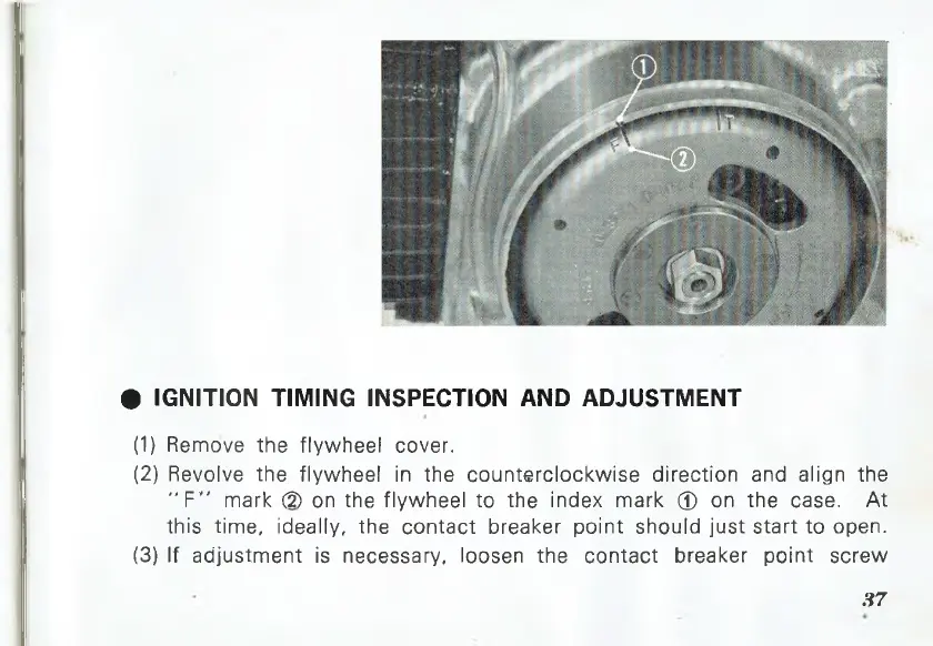 "F " mark (5) on the flywheel to the index mark © on the case. At