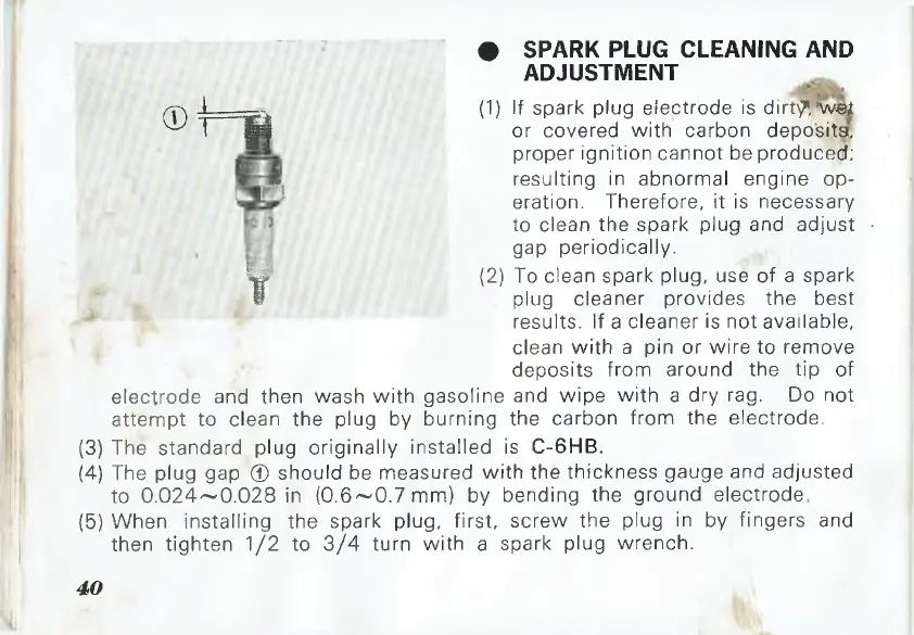 (5) When installing the spark plug, first, screw the plug in by fingers and