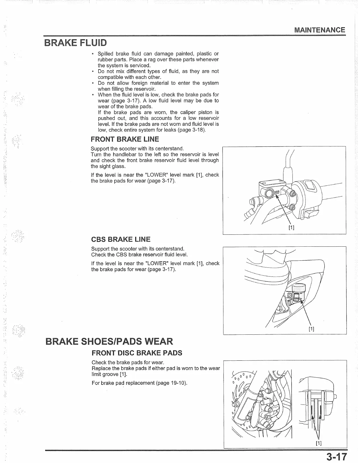 the brake pads for wear (page 3-17).
