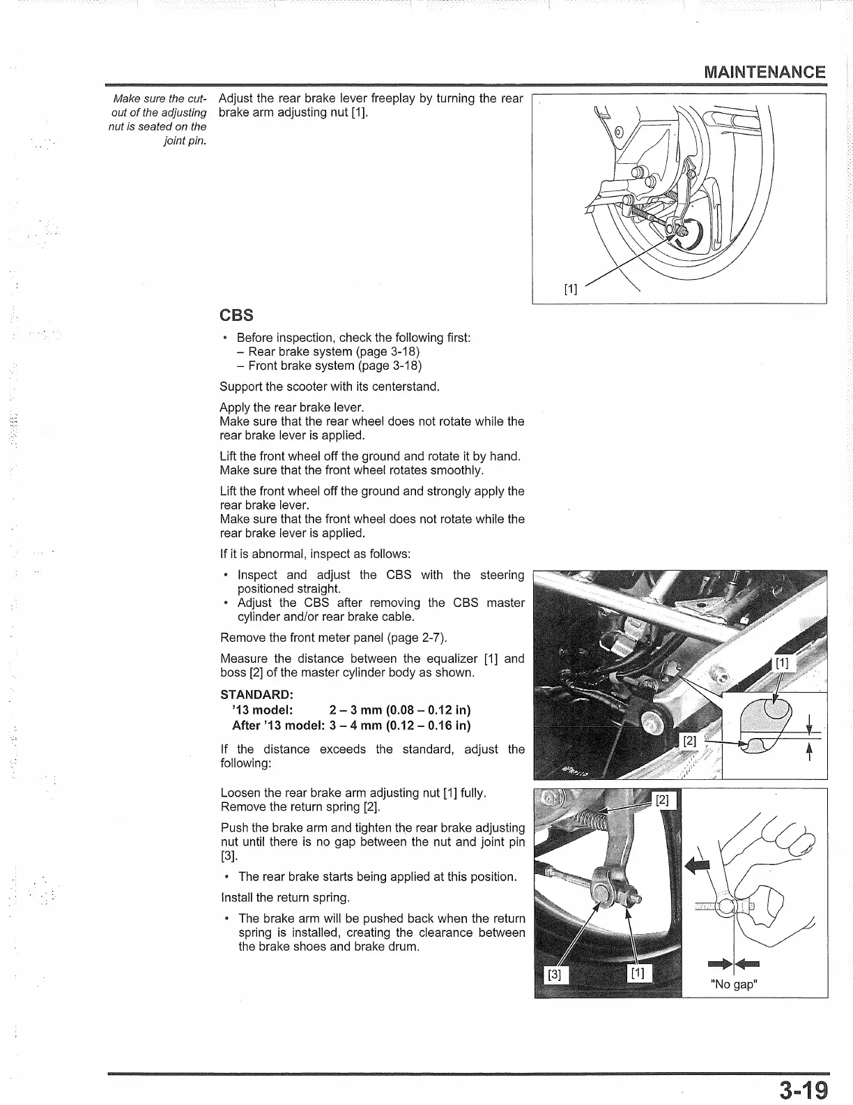 Make sure the cut- Adjust the rear brake lever freeplay by turning the rear