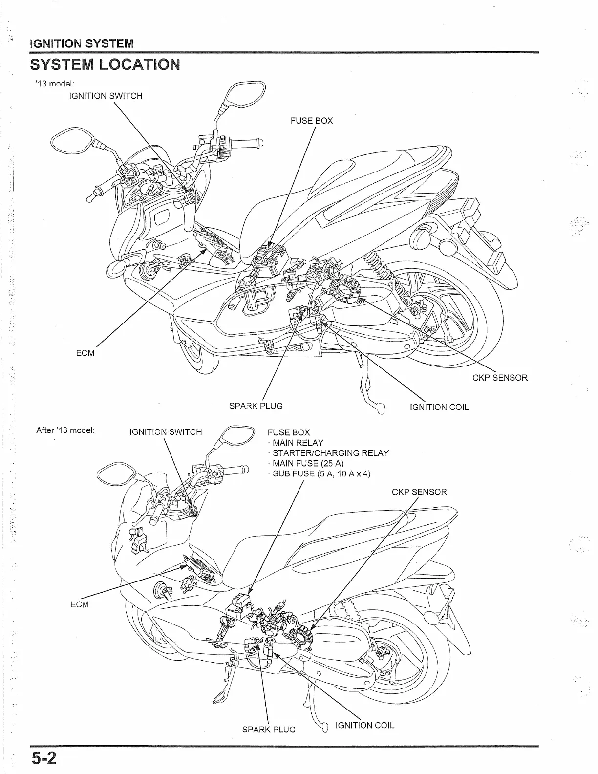 Honda PCX150 2016 - Ignition System Location Diagram