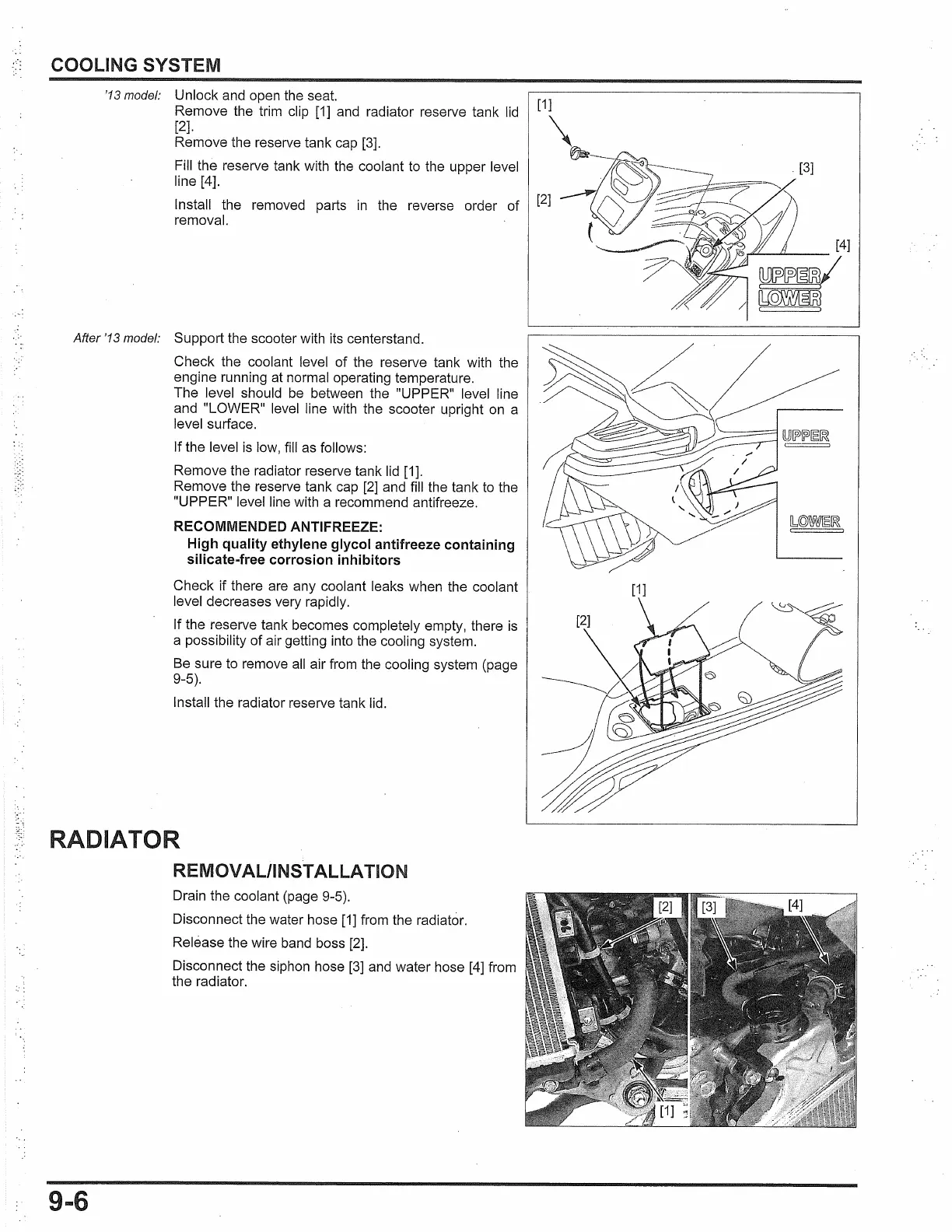 "UPPER" level line with a recommend antifreeze.