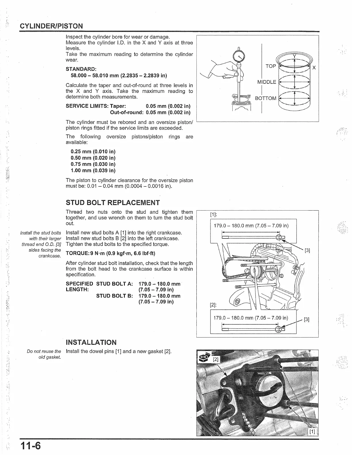 with their larger Install new stud bolts B [2] into the left crankcase.