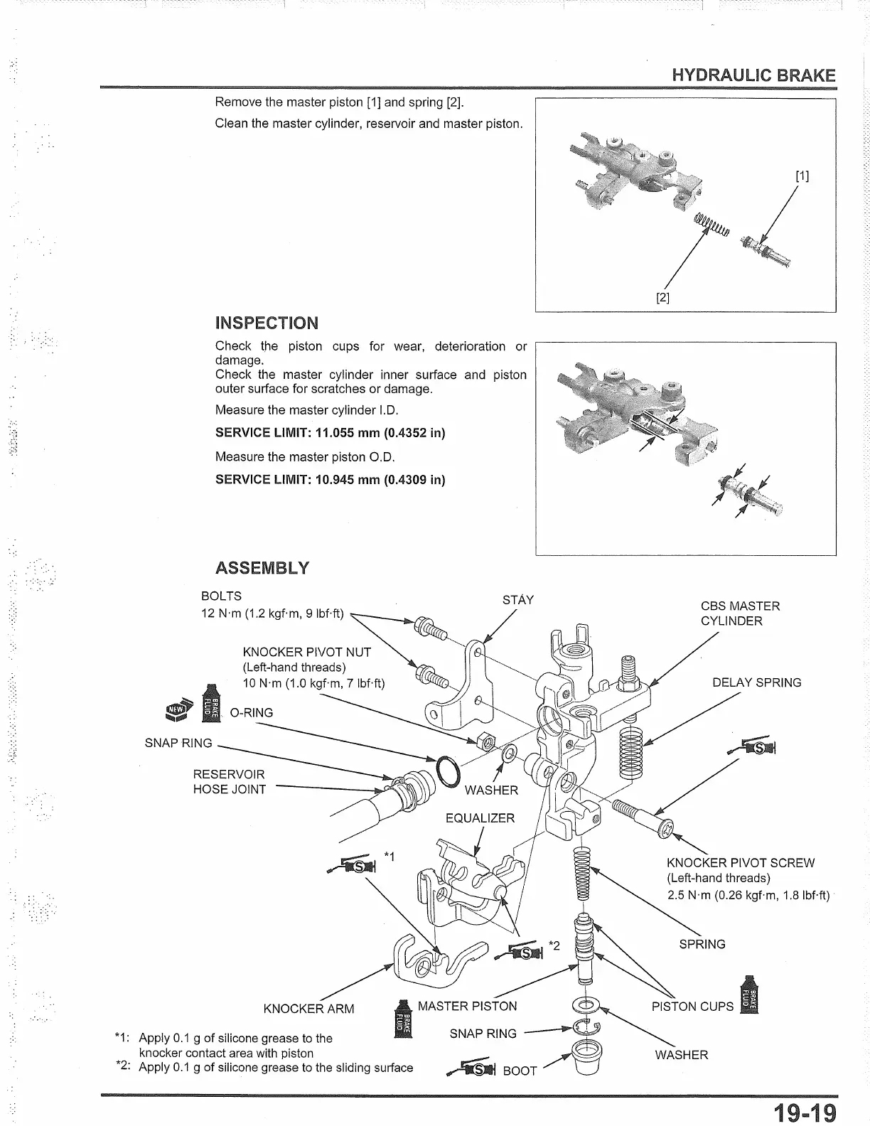 Remove the master piston [1] and spring [2].