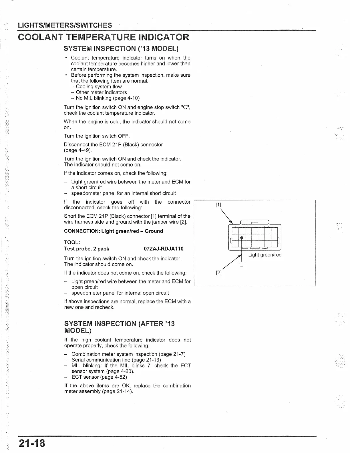 - Combination meter system inspection (page 21-7)