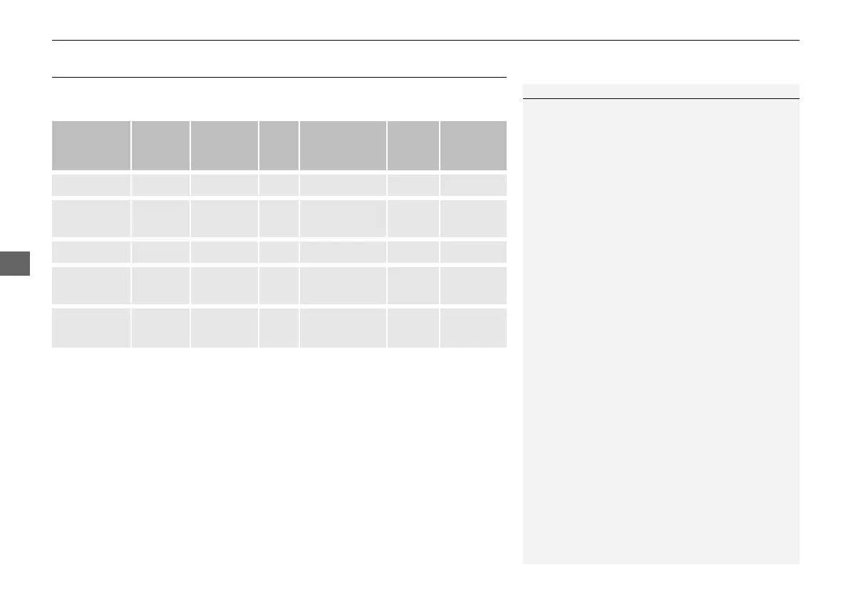 The table shows the possible audio source combinations of the front audio system