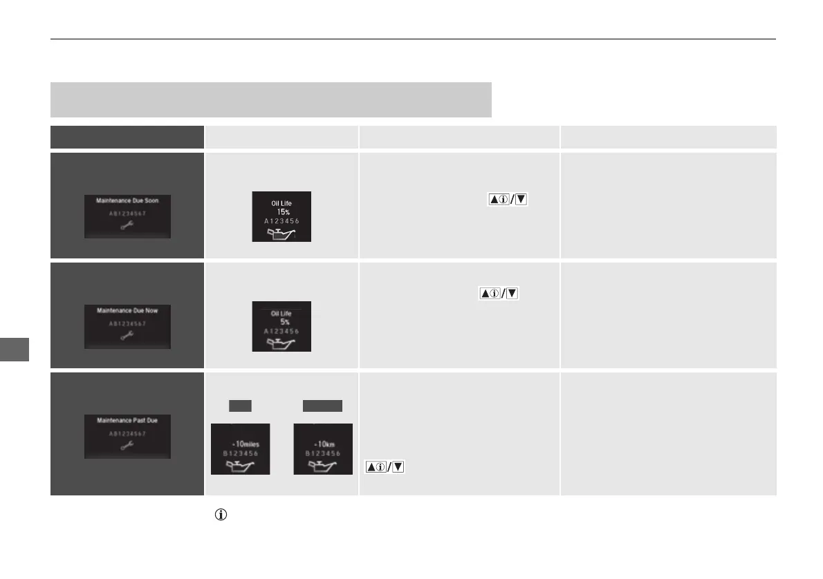 Maintenance Message Oil Life Display Explanation Information
